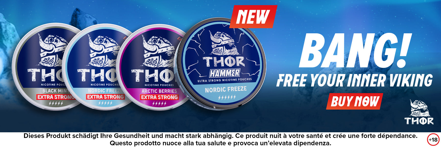 Thor bietet dir tabakfreie, feuchte Nikotinbeutel in aufregenden Geschmacksrichtungen. Die Marke kommt aus Luxemburg und legt besonders grossen Wert auf natürliche Zutaten.